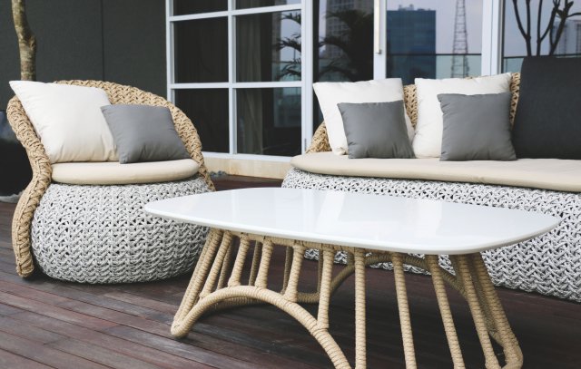 Bent and welded aluminium tube, synthetic synthetic water hyacinth weaving,