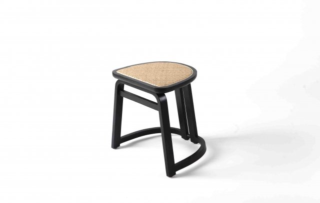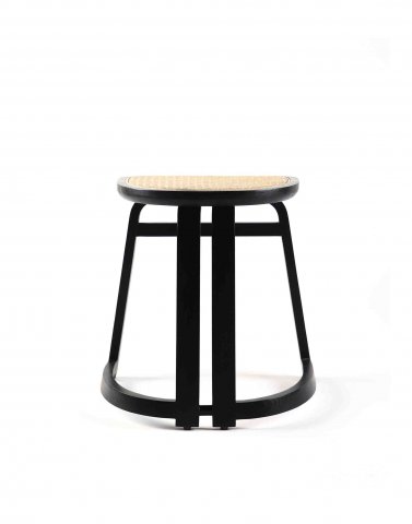 Solid Indonesian sungkai wood feet and seat with dowel joints feet black paint finish, unfilled pore, satin sheen.