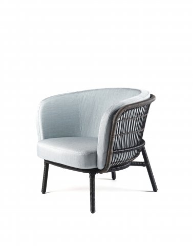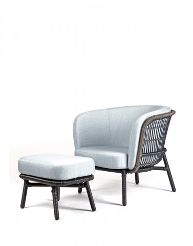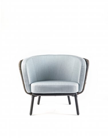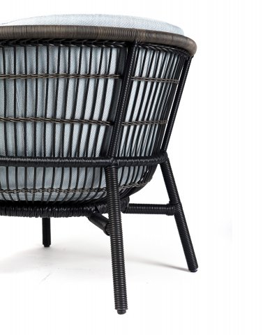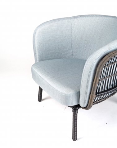 Bent and welded aluminium tube structures, synthetic wicker weaving, multiple density foam for outdoor furniture cushions with interior linen fabric